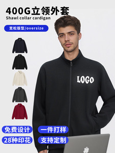 2025秋冬新品400G立领拉链开衫纯色重磅欧美男装街潮男女卫衣印图