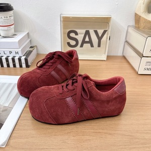 2025年秋季新款磨砂真皮大头系带勃肯鞋女时尚百搭休闲复古阿甘鞋