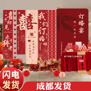 新中式订婚挂布条幅订婚宴布置装饰品氛围感背景KT板装饰全套