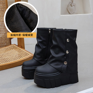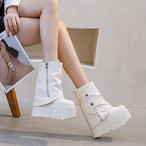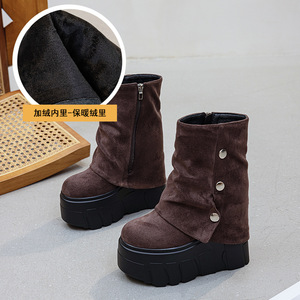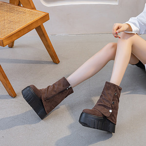 厚底增高裤管靴女2025秋冬新款女短靴纯色简约短筒皮靴圆头设计感