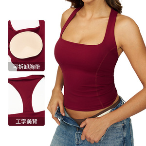 跨境裸感瑜伽背心工字美背紧身运动背心女户外跑步运动健身服2044