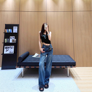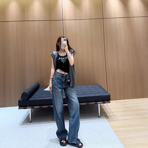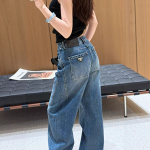 潮牌25ss秋冬新款带包镰刀牛仔裤工艺渐变洗水翻袋烫钻装饰牛仔裤