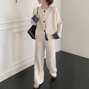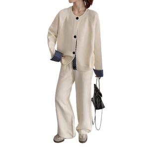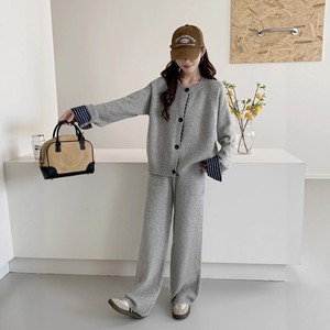 撞色格子拼接设计感针织套装女秋冬新款圆领开衫+纯色裤子两件套