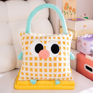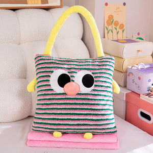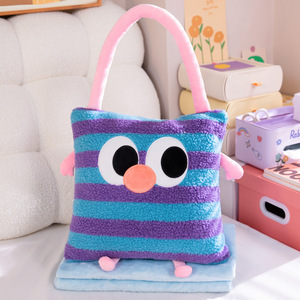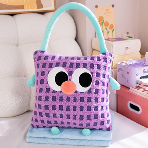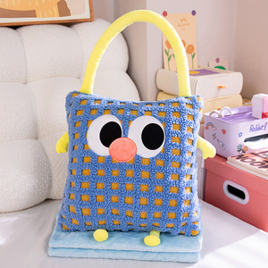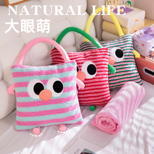 多巴胺大眼手拎抱枕二合一车载靠垫空调毯办公室午睡盖毯座椅靠垫