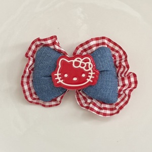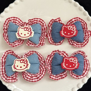 新款秋冬红色KT猫头充棉牛仔蝴蝶结服装辅料diy发夹头饰鞋花装饰