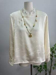 新中式国风真丝提花盘扣衬衫女2025秋季新款斜襟刺绣唐装改良上衣