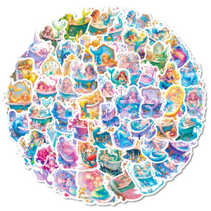 56张跨境新款梦幻美人鱼浴缸涂鸦贴纸高颜值少女心行李箱电脑贴画