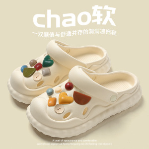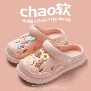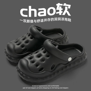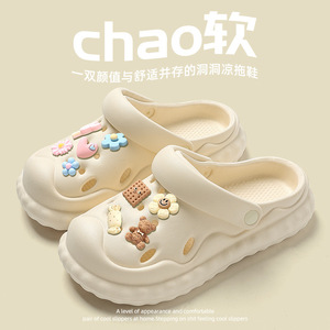 洞洞鞋女夏季外穿厚底沙滩踩屎感包头卡通pvc凉拖鞋女家用夏批发
