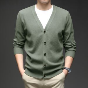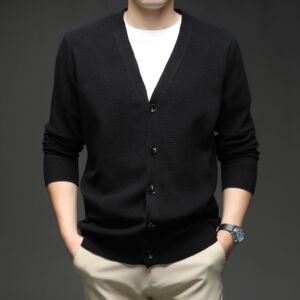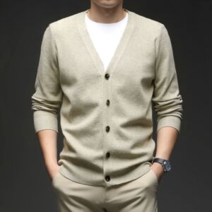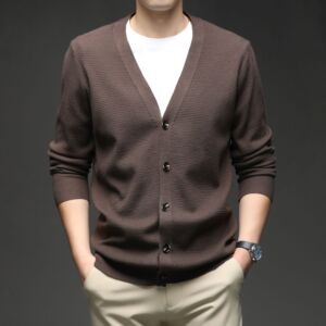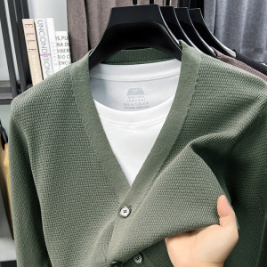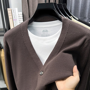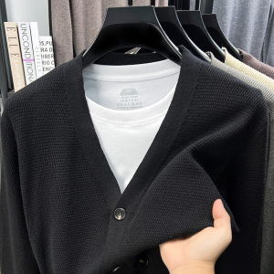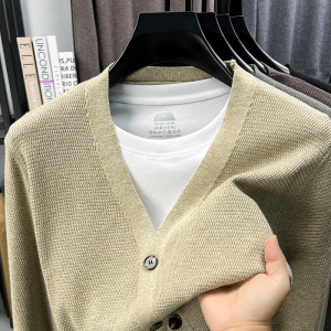 秋冬季新款针织开衫男韩版青年时尚休闲单排扣男士大V领毛衣外套