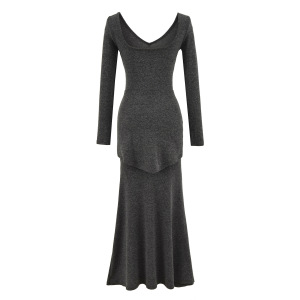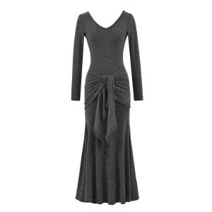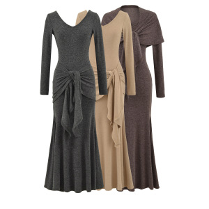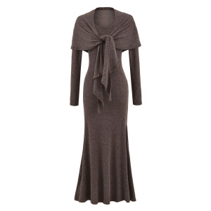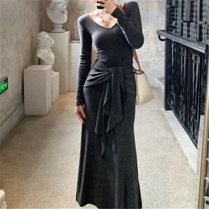 辣妹显身材U领假两件长袖连衣裙秋季系带修身包臀裙收腰显瘦长裙