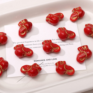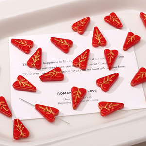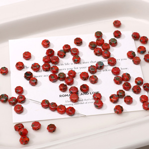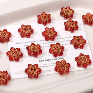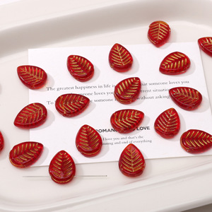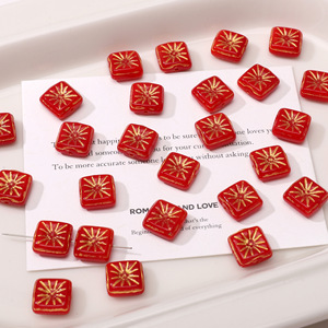 18mm红色描金捷克琉璃珠手工diy串珠手链钥匙扣饰品材料配件散珠