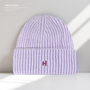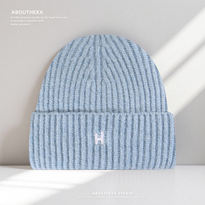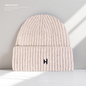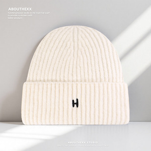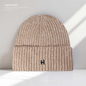 日系简约H字母帽子女街头潮人针织帽秋冬保暖百搭毛线帽男冷帽潮