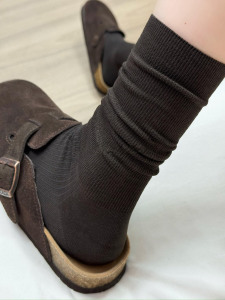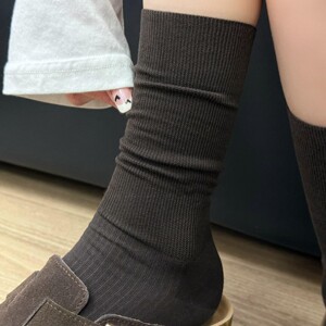 美拉德咖色袜子女款堆堆袜春秋竖纹长筒袜子配勃肯鞋无骨纯棉中筒
