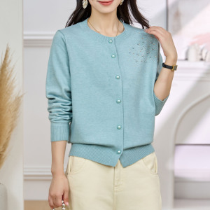 时尚简约妈妈装薄款针织开衫女洋气中老年毛线衫中年女装大码衣服