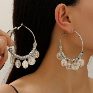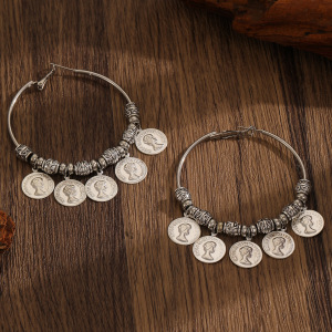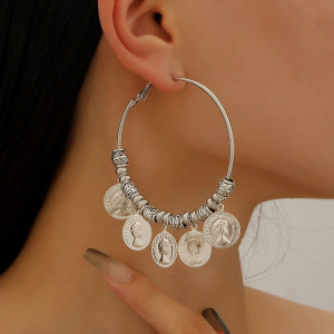 波西米亚复古浮雕头像人像耳环女大圈夸张耳圈民族风耳饰欧美饰品