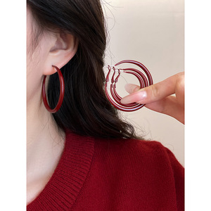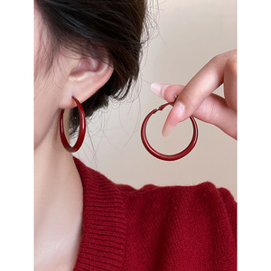 银针滴油圆形耳环复古简约小众时尚百搭耳圈轻奢高级感耳饰女批发