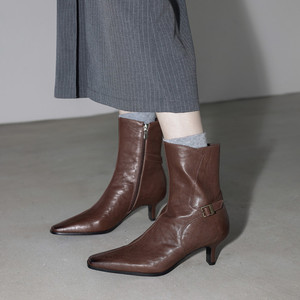 高品网红款水洗头层牛皮中古时装短靴女 尖头细跟高跟马丁靴短靴