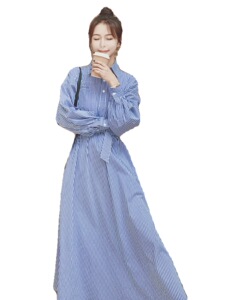 蓝色条纹长袖衬衫连衣裙女中长款2025新款法式设计感修身裙子6615