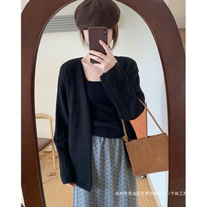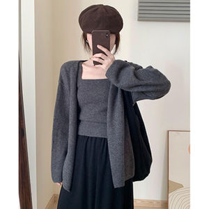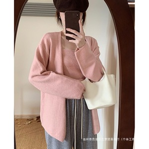 韩版温柔风宽松针织开衫吊带背心两件套春秋新品温柔减龄洋气毛衣