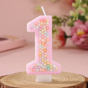 跨境马卡龙粉色泡沫气球生日蛋糕数字蜡烛派对用品创意装饰蜡烛