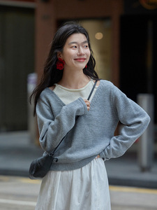 觅定假两件针织毛衣女秋冬新款慵懒高级感宽松套头气质上衣小个子