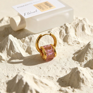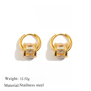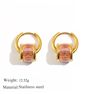 不锈钢小蛮腰彩色圆形耳扣钛钢小众金色镶钻耳环 时尚个性耳饰