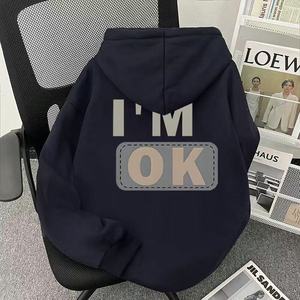 2025冬季连帽卫衣女藏青色多巴胺上衣