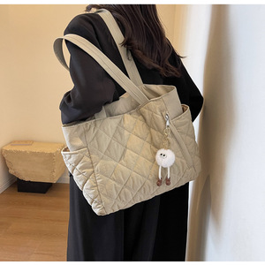 秋冬新款棉服包包大容量单肩手提包轻便休闲质感时尚菱格托特包