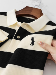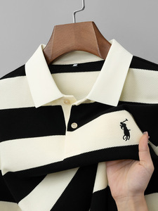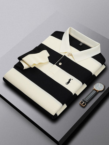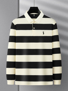 刺绣马球男士长袖POLO衫翻领撞色条纹T恤男商务休闲菠萝纹新上衣t