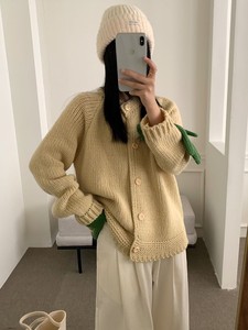 韩系粗针圆领软糯针织开衫女秋冬新款宽松慵懒高级感毛衣外套上衣