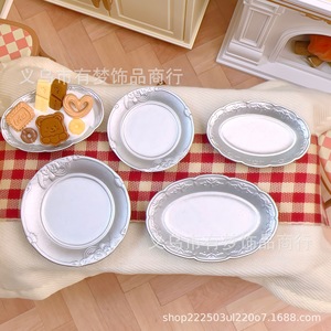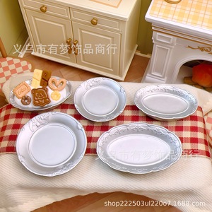 仿真微缩食玩椭圆银色盘子diy奶油树脂饰品配件捏捏装饰盘子手工