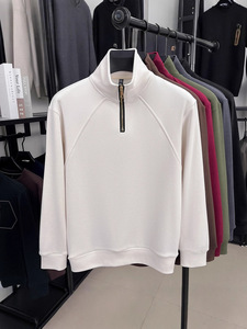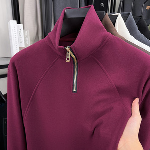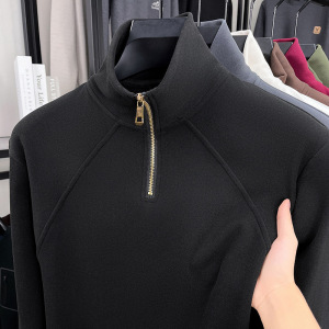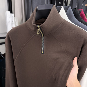 跨境德绒抗静电男士卫衣2025秋冬新款立领半拉链长袖保暖打底衫男