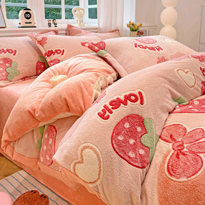 冬季牛奶珊瑚绒四件套立体雪花绒法兰绒加绒双面绒被套印花三件套