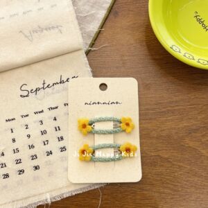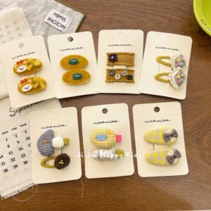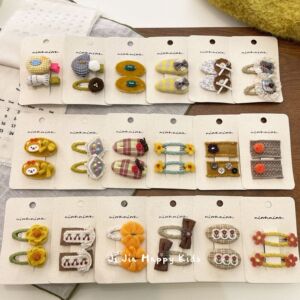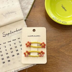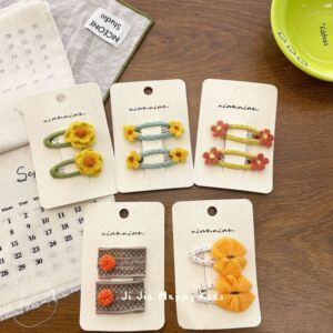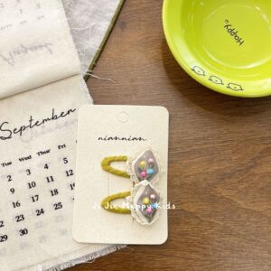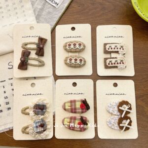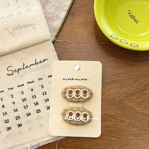 niannian念念新款甜美撞色丝绒布艺发夹可爱撞色格纹小花BB夹头饰