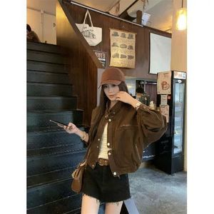 美式设计工装外套女新款复古休闲宽松显瘦通勤甜酷夹克牛仔上衣