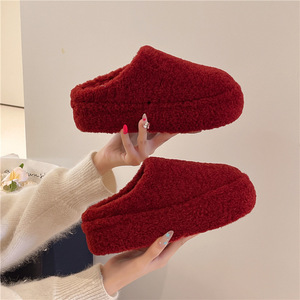 勃肯毛毛拖鞋女外穿2025秋冬新款厚底百搭加绒一脚蹬棉拖包头半拖