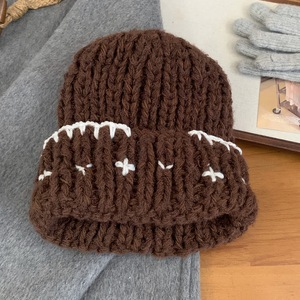 绿色针织登山毛线帽女秋冬显脸小防寒包头帽子大头围保暖护耳冷帽