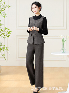 2025秋装新款阔腿裤二件套妈妈装显瘦减龄气质穿搭套装