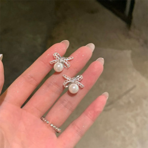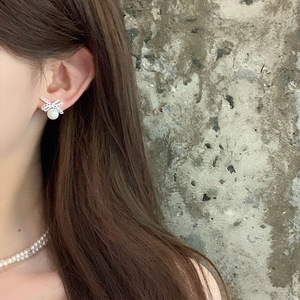 韩系芭蕾风蕾丝蝴蝶结珍珠耳钉女轻奢小众高级感气质耳环绝美耳饰