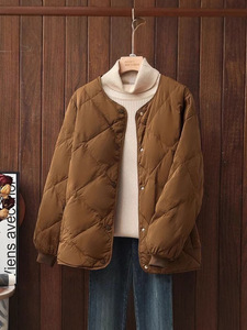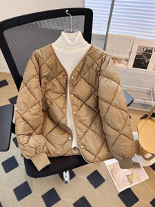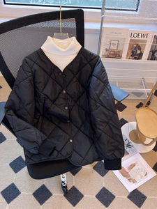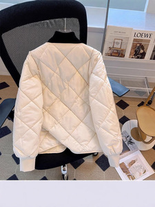 法式菱格ins圆领小香风轻薄短款保暖棉服冬季小个子长袖棉衣外套