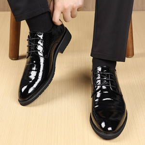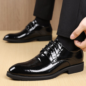 皮鞋男2025秋季新款商务亮面潮流男鞋英伦男士办公正装漆皮通勤鞋
