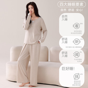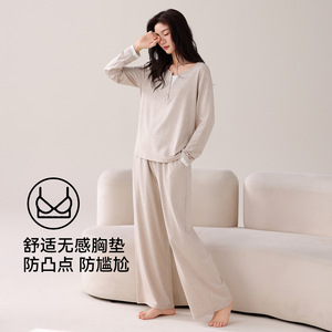 【带胸垫】2025年新款女士睡衣莫代尔棉长袖春秋季简约家居服套装