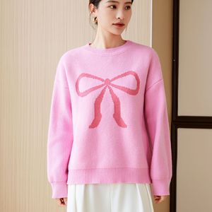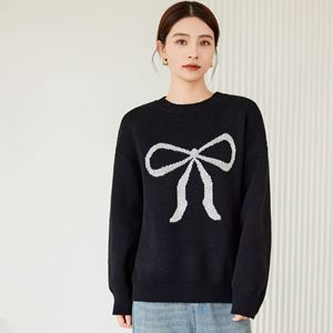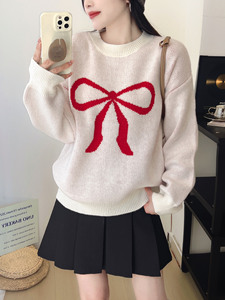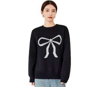 欧美跨境蝴蝶结图案针织套头衫女2025秋冬新款俏皮减龄圆领毛衣女