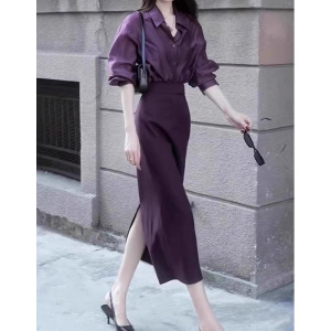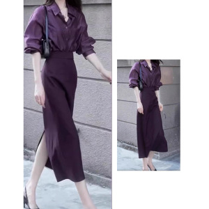 现货厂家批发 新款气场强大职场高JI感通勤穿搭衬衫半裙套装女