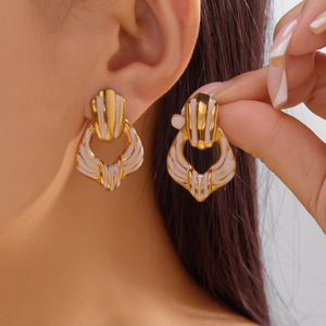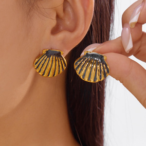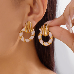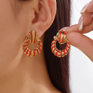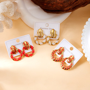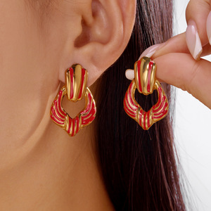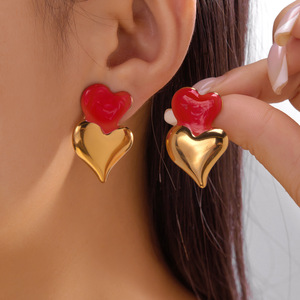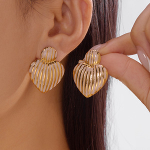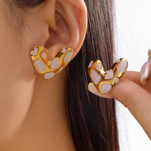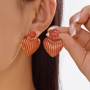 跨境新款不锈钢耳环情人节爱心滴油耳钉格纹百搭轻奢耳环心形耳饰
