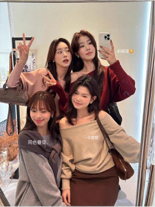 韩系chic秋季复古气质圆领套头纯色宽松百搭灯笼袖针织衫毛衣女