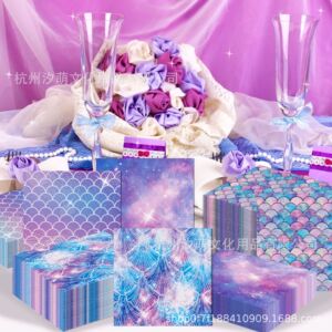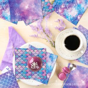 ZJ104 美人鱼方纸巾 节日派对布置餐巾 焕彩鱼鳞片装饰一次性纸巾