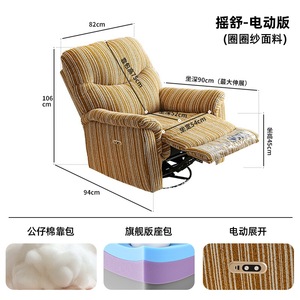 桐语特奶油风电动单人沙发可躺睡懒人旋转摇椅复古多功能休闲躺椅