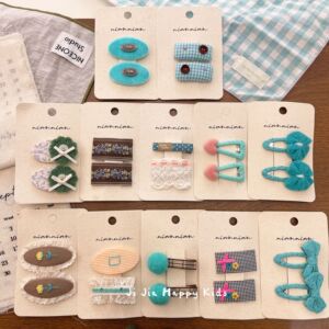 niannian念念儿童发夹撞色丝绒BB夹韩系甜美碎花格纹碎发夹头饰