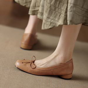 工厂直供 方头蝴蝶结时尚芭蕾舞鞋女法式复古低跟浅口单鞋